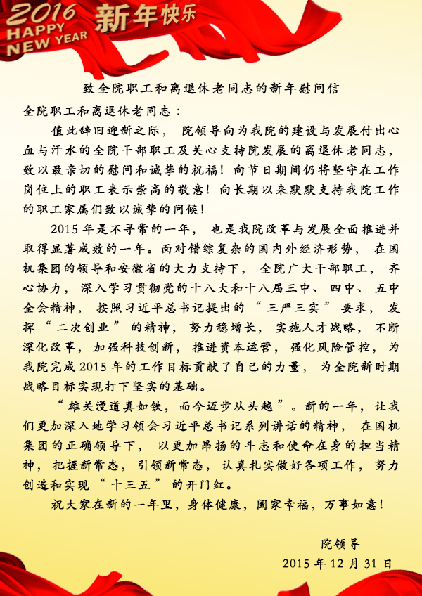 致全院職工和離退休老同志的新年慰問信